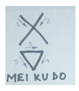 It is a symbol of attracting good luck in the Aura. Mei means the seven made in the symbol, which covers all the chakras in the body. The energy comes from left side of the 11th Chakra and gets distributed in the entire body. Step 2 is on Anjana Chakra where the energy is brought from right side or Solar Chakra which makes the process of cognition (knowing) clear. Step 3 is a point below Anjana Chakra and again the same step is being repeated because the energy is pure at this centre.