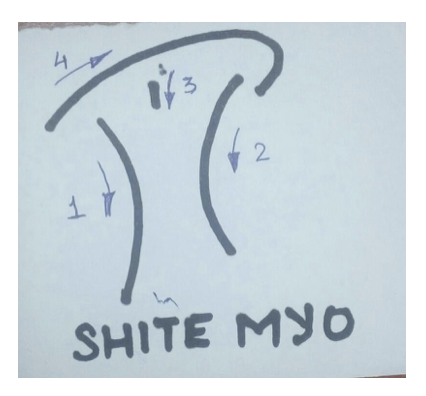 SHITE is the energy flow of Lunar and Solar Nadi downwards with downward movement of the energy on third eye. The flow comes from Divine Realm. SHITE is making the third eye empowered to see the changes in the energy in Aura. MYO is the step 4 which covers the crown chakra and comes to the side portion of Anjana Chakra to give the message of Divine and develops understanding of the chakras and how to deal with the problems. SHITE MYO is also Thrust building chakra, which means the channels are made empty so that Divine Energy can come to the person. In this way the symbol works.